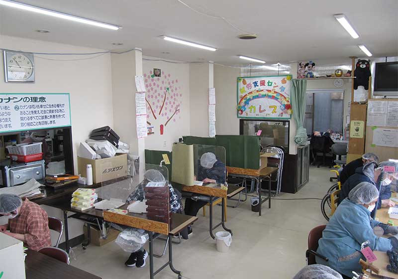 地域活動支援センター カナンは、地域において自立した日常生活を営むことができるよう、創作的活動や生産活動の機会を提供し、社会との交流を図ることを目的としています。