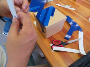 空の小箱と、テープやこちら↑のちよ紙などを使い、