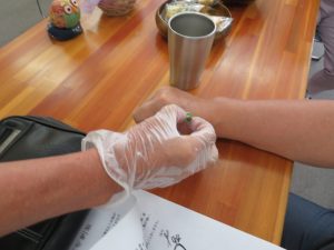 お灸は2種類(ぬるめと熱め)、不眠に効くつぼ(手)に行いました