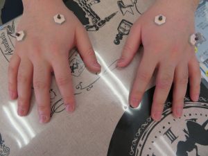 手以外にも顔のこめかみや手首付近にもお灸をしていただきました。こめかみのお灸は施術後目がすっきりして気持ちよくなりました。