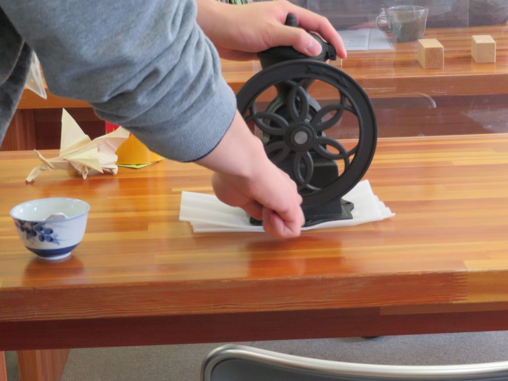 利用者さんにも挽いていただきました。