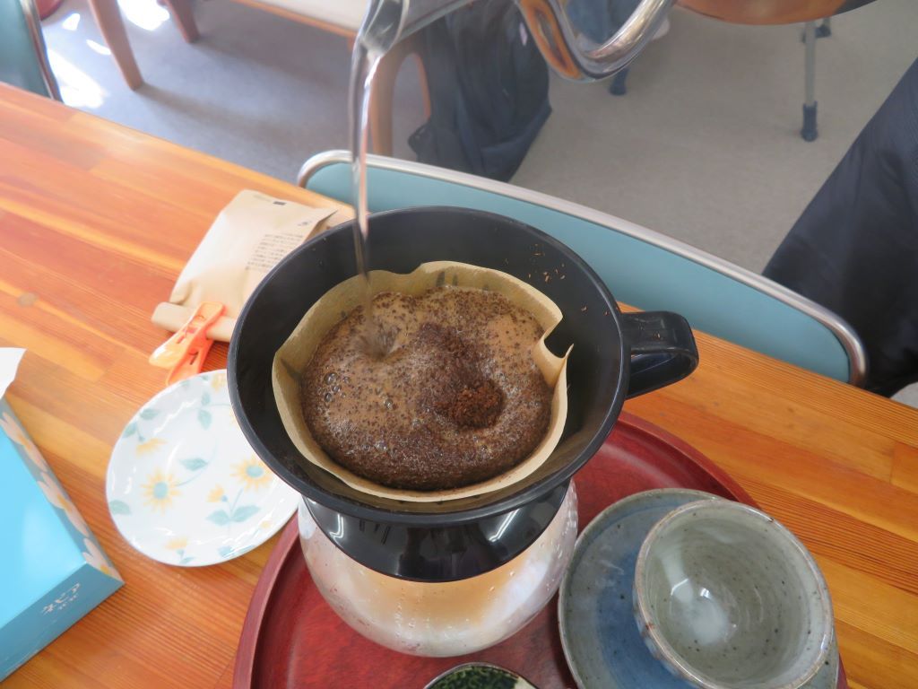 ドリッパーにセットした粉に、少しずつお湯を注いでいきます。